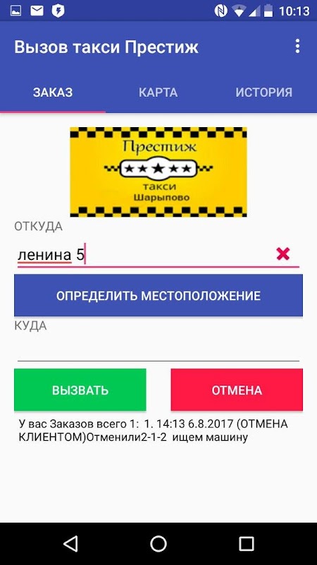 Ứng dụng này cho phép một chiếc smartphone để gọi một chiếc taxi uy tín Sharypovo