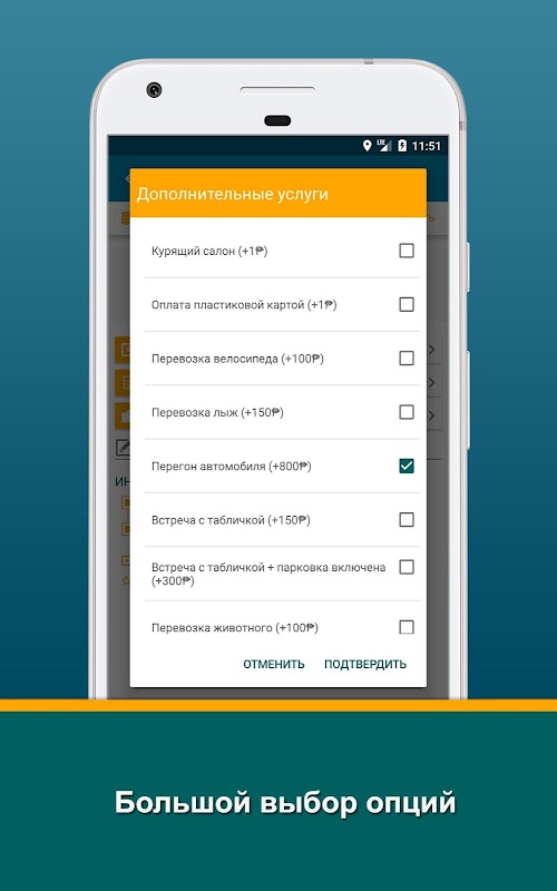 В нашем приложении можно выбрать дополнительные опции: