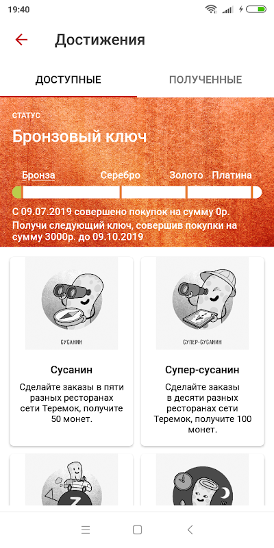 Ключ определяет, сколько вы копите Монетами с каждого заказа. Зарегистрируйтесь - и бронзовый ключ ваш. Совершайте покупки в Теремке и дойдите до платинового!