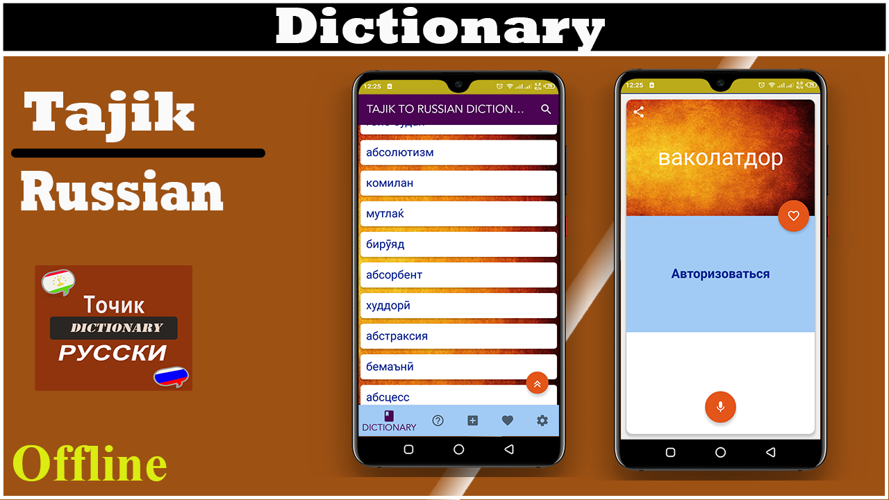 Ứng dụng Tajik Russian Free Dictionary có các tính năng thân thiện với người dùng và dễ sử dụng. Bạn có thể tìm thấy ý nghĩa của bất kỳ cụm từ với ứng dụng này. Nó có cả tính năng đầu ra văn bản và giọng nói.