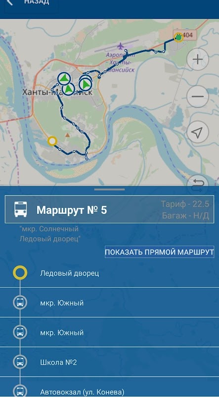 Ứng dụng để thông báo cho công chúng về công việc của vận tải hành khách Khanty-Mansiysk.