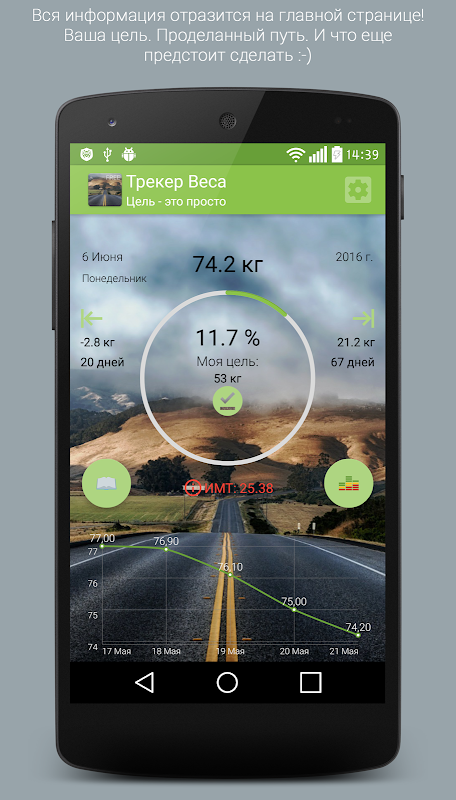 + Быстрый переход в ваш дневник для ввода веса при нажатии на напоминание