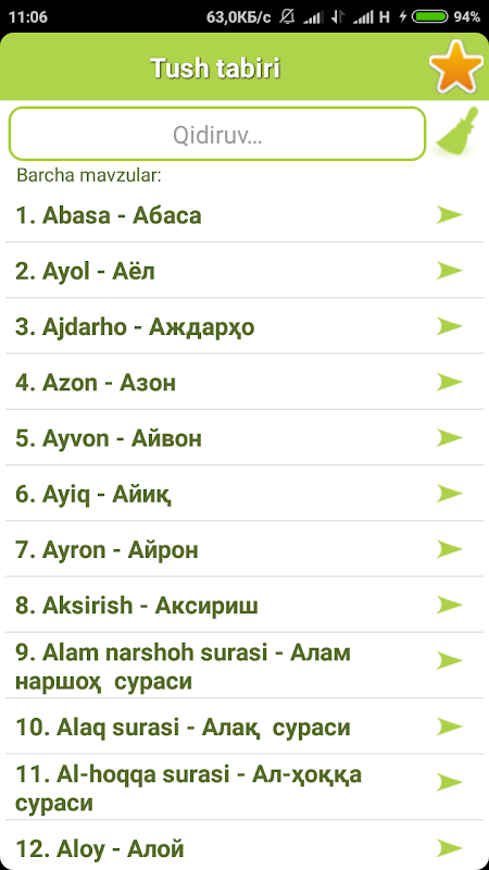 Тушлар таъбири - Tushlar tabiri 1.0