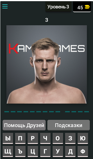 Совершенно новая игра!!! Насколько вы преданный фанат UFC? Считаете что знаете практически всех бойцов? Уверены? Тогда предлагаю вам проверить свои силы в абсолютно новой игре!!! И только потом не плачьте, что слишком сложно! Всего в игре пока 47 уровней, но всего их будет около 200. Вступай в группу KG: https://vk.com/kamil_games_official и следи за новостями!