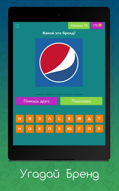 Увлекательное приложение «Угадай Российский Бренд» - отличный способ провести свободную минуту в любом месте: в транспорте, в очереди или сидя за столиком в кафе. Игра построена по принципу шоу «Поле Чудес» и подразумевает отгадывание слов - названий популярных брендов. К услугам пользователя – подсказки, кнопка «Помощь Друзей» и деньги, используя которые можно показать одну из букв или перейти на следующий уровень.