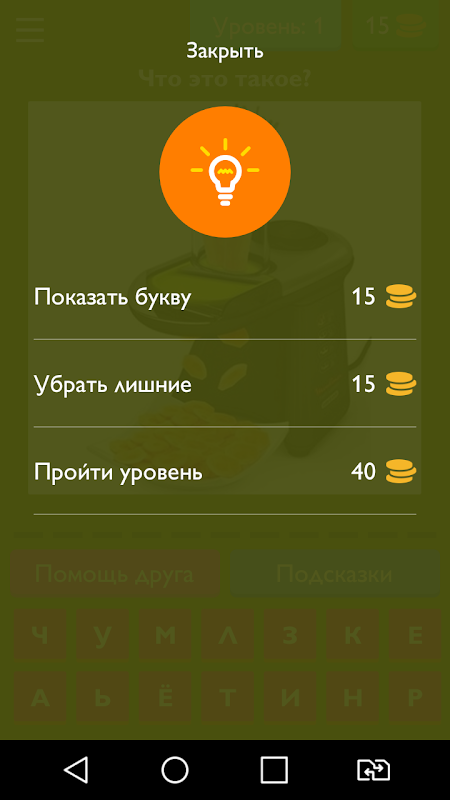 Очень интересная и увлекательная викторина. Суть которой что бы игрок угадал название бытового кухонного прибора по картинке. Игра увлекательна тем, что подходит абсолютно каждому, будь это ребёнок или взрослый. Для взрослых это покажется очень легко, но для детей возможно будет не простой задачей.