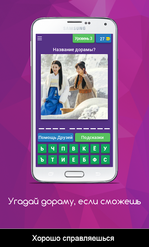 Угадай дораму, если сможешь - это бесплатное приложение - викторина на тему популярных корейских сериалов.