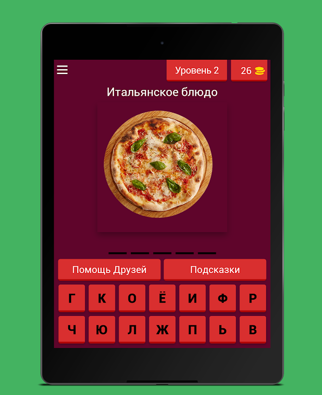 Правила игры максимально просты: на каждом уровне показана фотография знакомой вам еды. Ваша задача угадать, что это за блюдо и перейти на следующий уровень!
