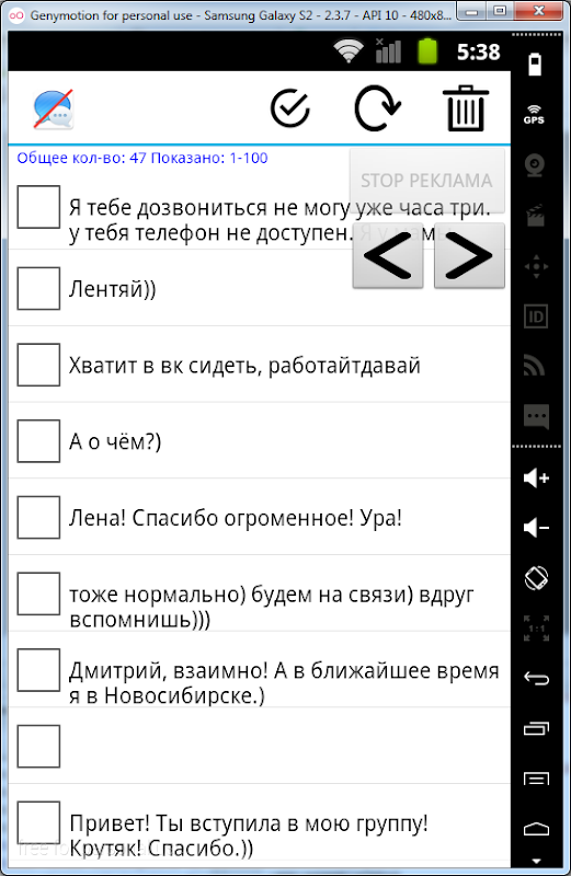 Приложение позволяет удалять до 10 беседы, диалоги за один клик.