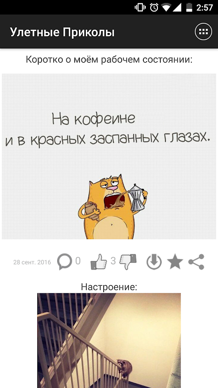 Современные анекдоты, без бородатый шуток. Для любителей милого юмора с животными, публикуются приколы про кошек и собак. С нашим приложением можно смеяться целый день, с утра до конца дня. 🤪