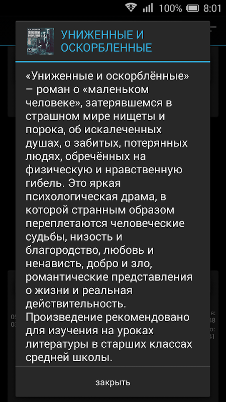 "Xúc phạm và bị thương" - một cuốn tiểu thuyết về "người đàn ông ít", bị mất trong thế giới khủng khiếp của nghèo đói và ngược, các linh hồn bị thương tật của người bị áp bức, bị mất người, cam chịu tiêu hủy vật lý và đạo đức.