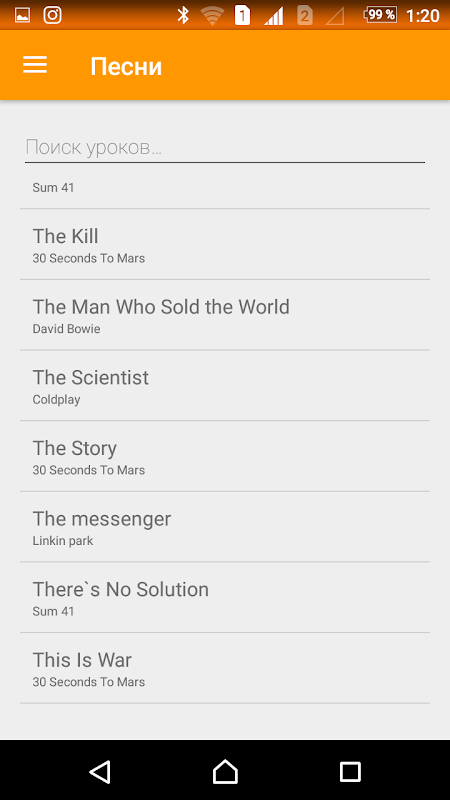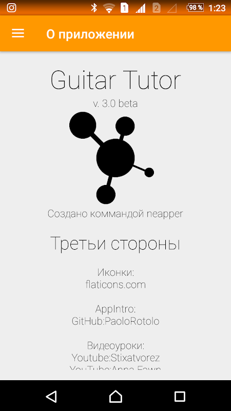 Простое приложение для гитаристов. Содержит ссылки на видео уроки. В настоящее время их более ста. Кроме того, к уроку каждой песни есть текст.