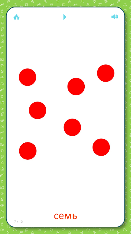 Những lá bài có âm thanh chuyên nghiệp của Doman dành cho những đứa trẻ lần đầu tiên làm quen với các con số. Ứng dụng này cũng có hai trò chơi giáo dục "Tìm số" và "Ngón tay" và các bộ thẻ bổ sung về chủ đề "Thú cưng", "Phương tiện giao thông", "Các mùa".