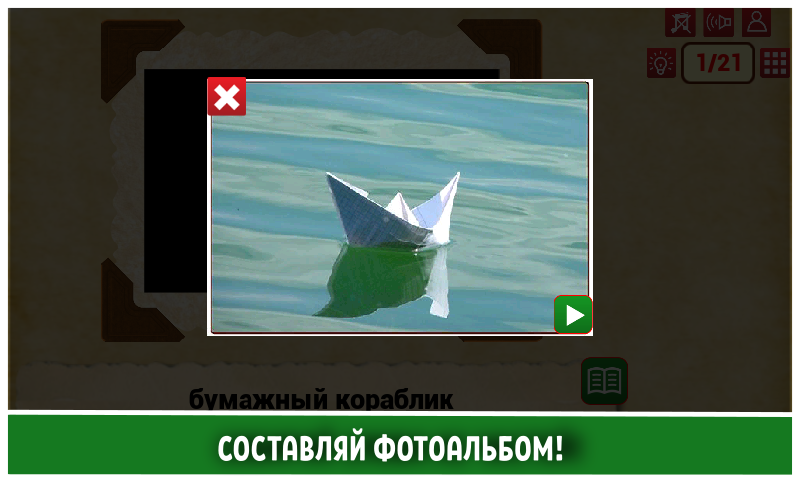 "Фотоальбом". Есть текст, и три картинки. Нужно прочитать текст, выбрать правильную картинку. В конце формируется "фотоальбом" для просмотра.