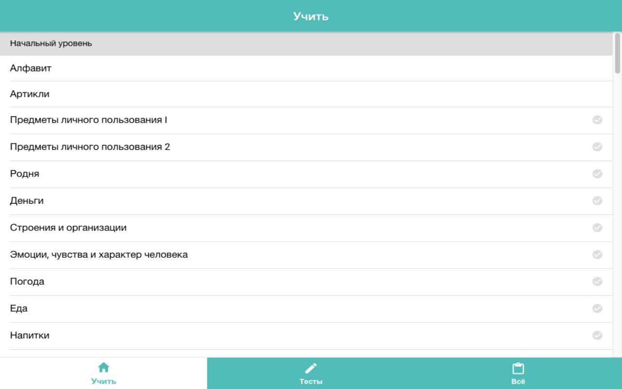 Тестовые задания после каждой категории помогут тебе закрепит новые слова.