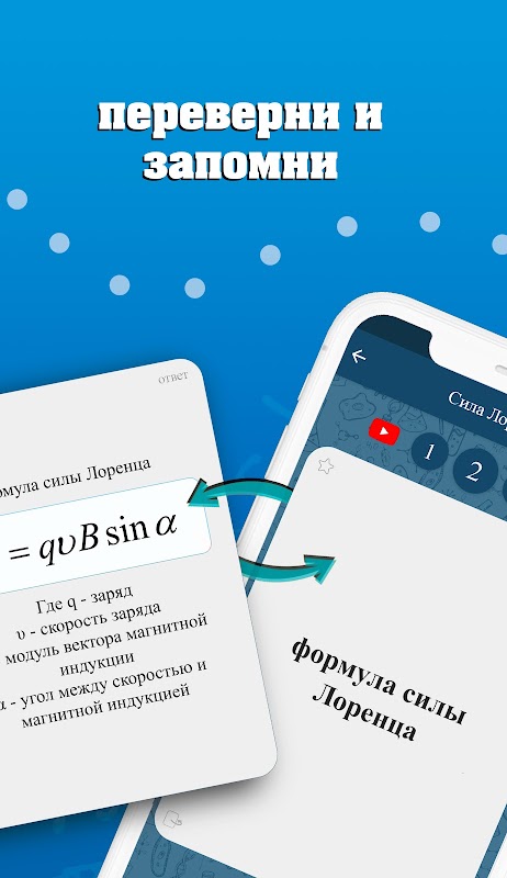 Toàn bộ khóa học vật lý của trường được trình bày dưới dạng thẻ nhớ, đây là phương pháp tốt nhất để ghi nhớ một lượng lớn thông tin. Mỗi thẻ không chỉ chứa các quy tắc, mà còn có giải thích đơn giản của chúng với các ví dụ.