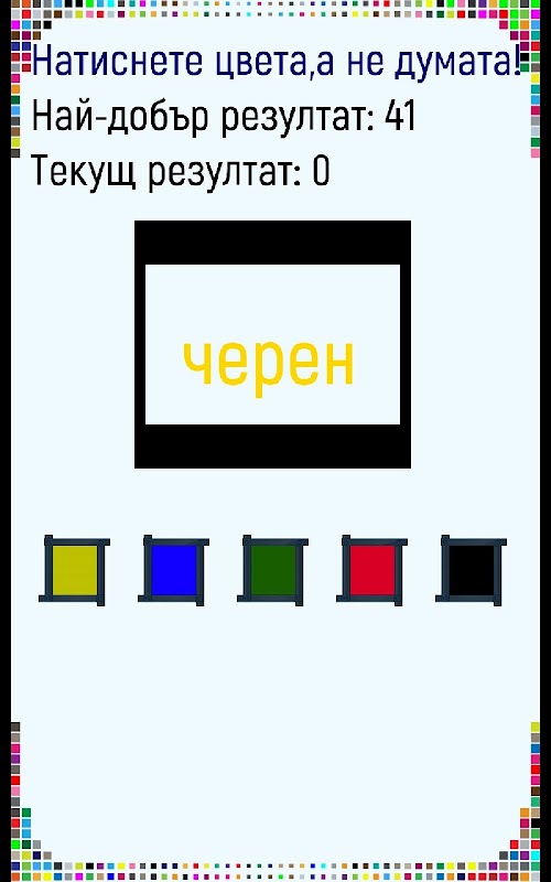 - một trò chơi rèn luyện phản xạ của não bộ. Mục tiêu là nhấn màu bạn nhìn thấy, không phải màu bạn nhìn thấy.