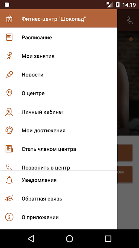 Ứng dụng cho khách hàng của trung tâm thể dục "Sô cô la"