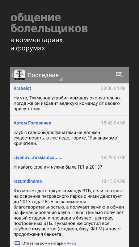 Torpedo từ Sports.ru là ứng dụng tốt nhất dành cho người hâm mộ câu lạc bộ bóng đá Torpedo (Moscow). Kết quả đối sánh và lịch, chương trình phát sóng văn bản, tin tức và video - mọi thứ về đội bóng yêu thích của bạn, nhanh chóng và chi tiết. Theo dõi ngư lôi chưa bao giờ thuận tiện đến thế.