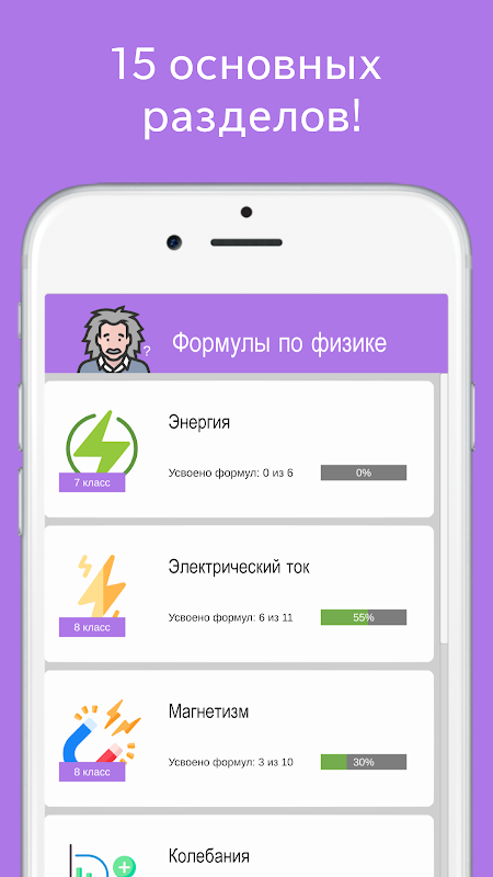 Các công thức Vật lý cũng phù hợp với OGE và Kỳ thi Thống nhất, dưới mỗi công thức đều có mô tả chi tiết, nghĩa là mỗi chữ cái đều được ký, cũng như tỷ lệ phần trăm và chỉ số màu cho biết bạn biết rõ công thức này hay công thức kia.