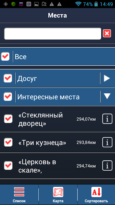 ● MÔ TẢ VÀ CÂU CHUYỆN. Mô tả về mỗi địa điểm thú vị được biên soạn chuyên nghiệp bằng tiếng Nga và bao gồm thông tin cơ bản, bao gồm: Cách đến đó, giờ mở cửa, v.v.