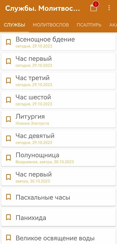 Часы (в том числе Царские) и Божественная литургия собраны на каждый день.