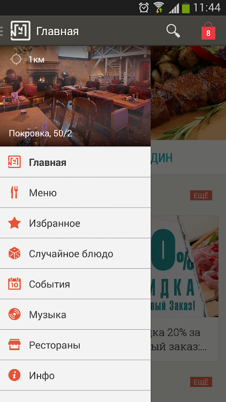 Пользуйтесь приложением и получайте скидки при доставке блюд, первыми узнавайте о ближайших концертах, акциях и новых проектах нашего холдинга. Встроенный плеер порадует модной музыкой наших DJ.