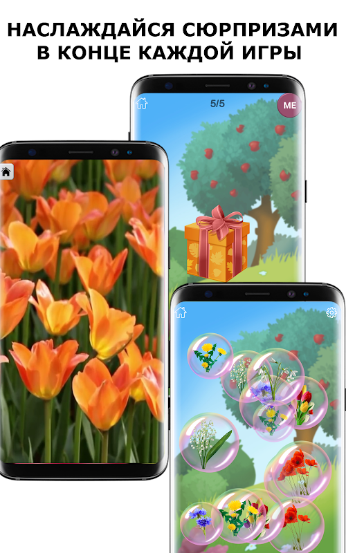 Ứng dụng này được thiết kế để dạy trẻ em đọc bằng tiếng Nga và nghiên cứu thực vật.