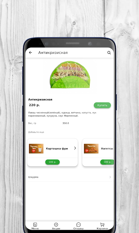 Giờ đây, việc đặt hàng shawarma thậm chí còn trở nên dễ dàng hơn - thông qua ứng dụng di động của chúng tôi! Tải xuống ứng dụng, đặt hàng chỉ trong vài cú nhấp chuột và hương vị của món shawarma tuyệt vời sẽ không còn lâu nữa!