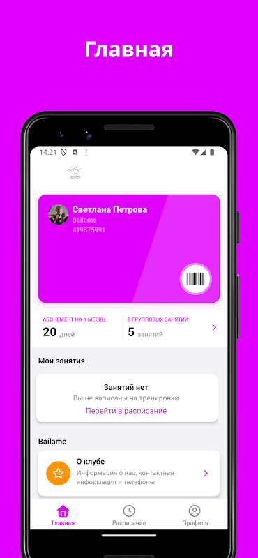 Ứng dụng di động dành cho khách hàng của trường múa "Bailame"