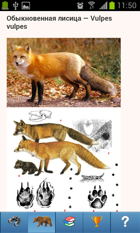 Бесплатная демонстрационная версия мобильного полевого определителя наземных млекопитающих (зверей) и следов их жизнедеятельности "ЭкоГид: Звери и Следы".