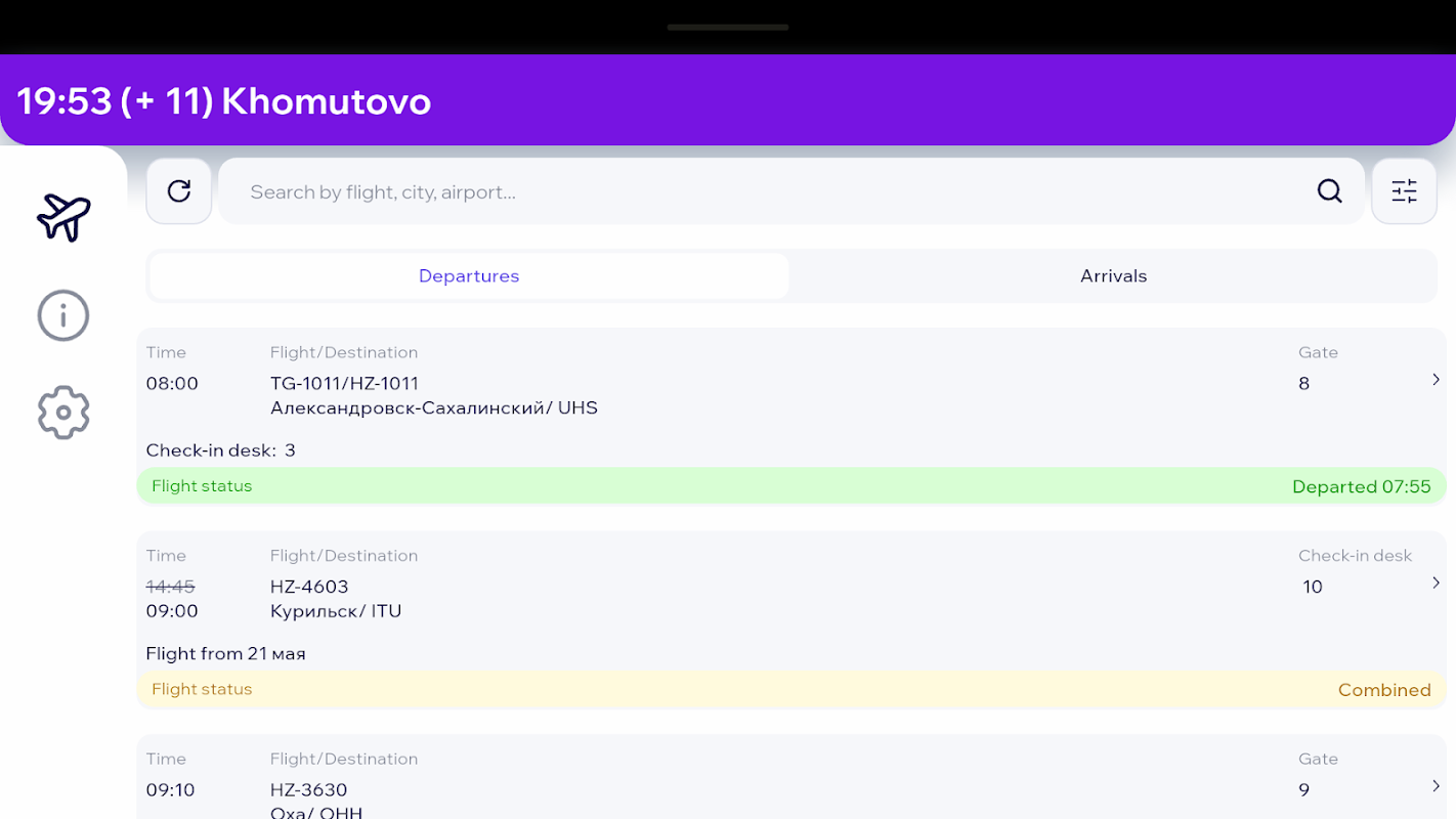 Giới thiệu về Южно-Сахалинск: табло рейсов