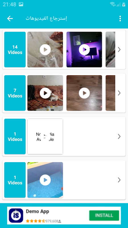 Tải ứng dụng về điện thoại, sau đó nhấn nút “Recover Deleted Videos” và để ứng dụng chạy. Quá trình tìm kiếm video đã xóa sẽ mất một chút thời gian khi kết thúc, ứng dụng sẽ hiển thị cho bạn tất cả các video trên điện thoại, bao gồm đã xóa và không bị xóa. Chọn video bạn muốn và nhấn nút “Khôi phục video đã xóa” ngay bây giờ