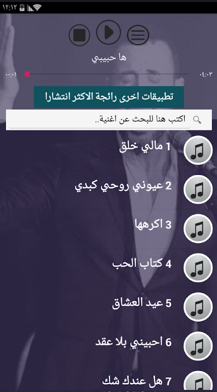 منوعات اغاني عربية بدون نت نقدم اليكم تطبيق يظم مجموعة من اجمل اغاني الموسيقار كاظم الساهر بدون نت ..