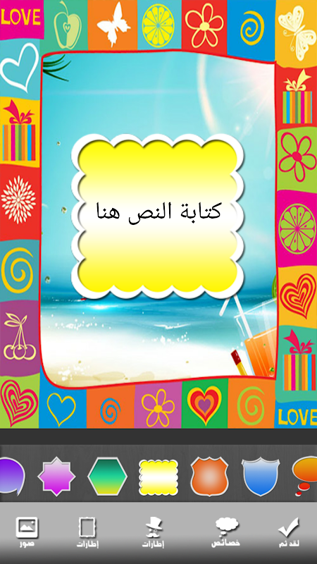 تطبيق الكتابة على الصور اون لاين طريقة جميلة وجديدة للتعبيرعن مشاعرك مع أصدقائك أو حبيبك ويحتوي على تأثيرات مدهشة الخاصة بكتابة النص على الصور الخاصة مع خطوط كتابة مختلفة يمكنك إختيار ما يعجبك منها ، يمكنك استخدام هذا التطبيق لخلق تأثيرات وإطارات متنوعة على الصور والكتابة عليها وجعل الصورة أكثر جاذبية عن طريق إضافة ملصقات توضيحية رائعة.
