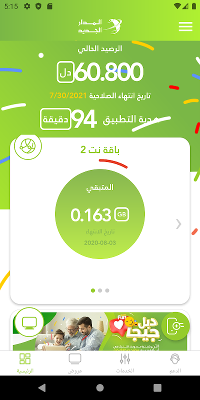 Ứng dụng Al-Madar mới cho phép truy cập vào hầu hết các dịch vụ và sản phẩm của Al-Madar Al-Jadeed mọi lúc một cách dễ dàng và rõ ràng hơn. Trong số các dịch vụ này: