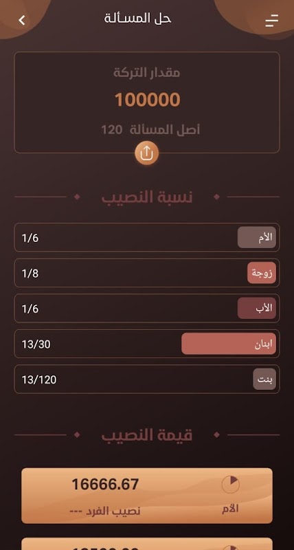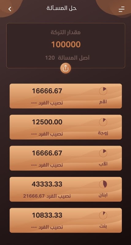 - تقارير ورسومات بيانية لقسمة المواريث.