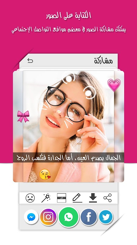 ♥- برنامج الكتابه على الصور يحتوى على مجموعة ضخمه من الملصقات المتنوعه التي تناسب جميع المناسبات