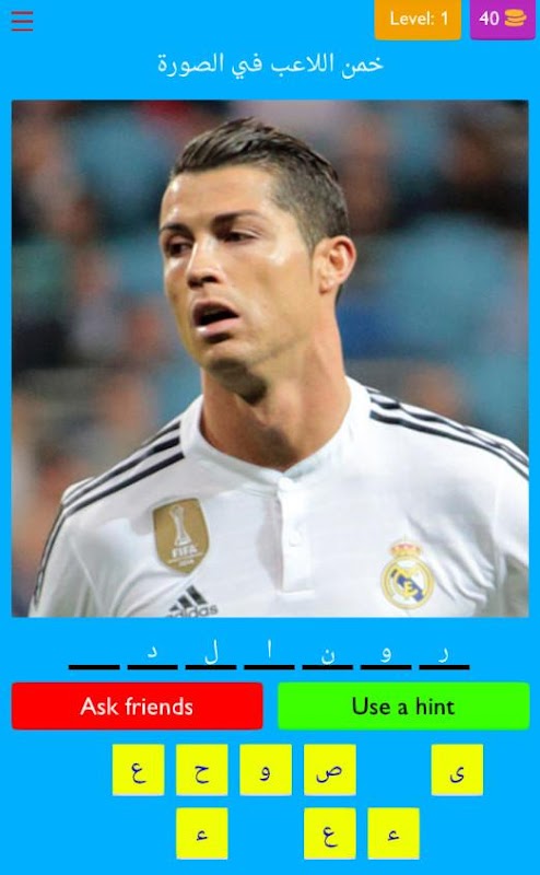 تحدي لكل عشاق الكرة المستديرة حول العالم العربي يكمل التحدي في معرفة اسماء لاعبي الكرة في الصورة ,يضم التحدي اشهر و كبار لاعبي في العالم من دوريات مختلفة ,لا تقلق ان لم تعرف اللاعب يمكنك استعمال نقاطك في حدف العروف او اجتياز المرحلة