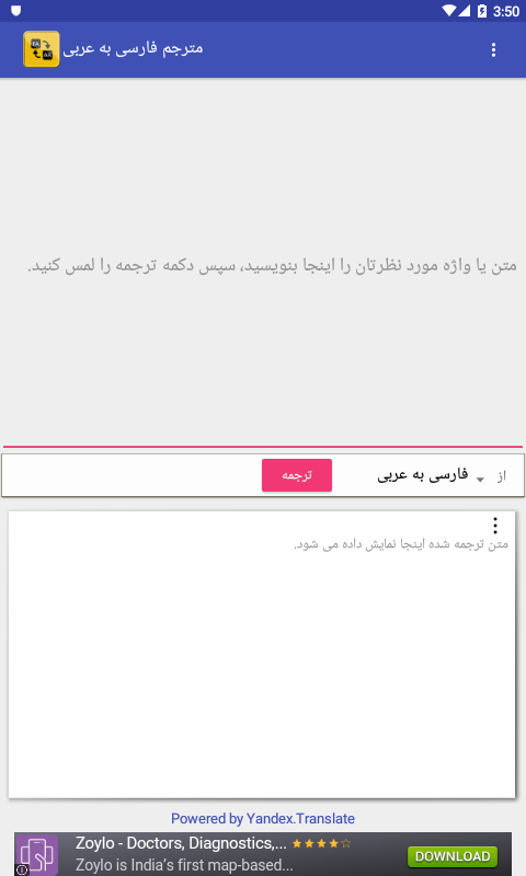 این مترجم فارسی عربی به شما کمک می کند تا متن خود را از زبان فارسی به عربی یا برعکس ترجمه کنید.