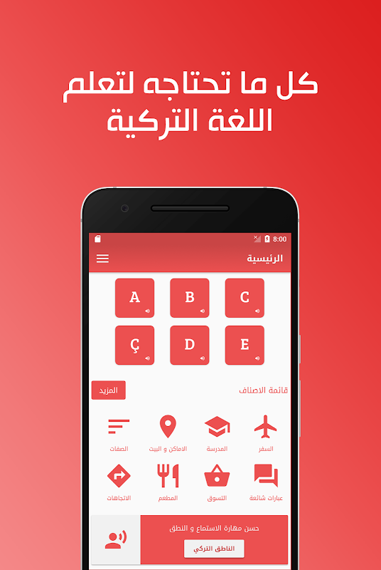 Và một phần bao gồm một nhóm lớn các cụm từ được sử dụng nhiều nhất trong tiếng Thổ Nhĩ Kỳ được dịch sang tiếng Ả Rập. Nếu bạn muốn thông thạo tiếng Thổ Nhĩ Kỳ, bạn phải lặp lại các cụm từ mỗi ngày và hiểu rõ các bài học và bạn sẽ nhận thấy sự phát triển tuyệt vời trong thông thạo tiếng Thổ Nhĩ Kỳ.