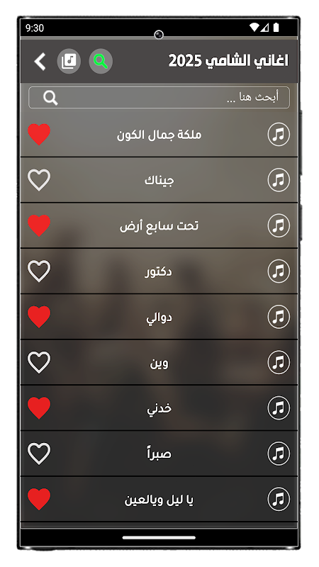 Tất cả các bài hát Al Shami không cần mạng 2025: Bao gồm các bài hát sôi động, tình yêu, lãng mạn, trách móc, Lebanon, v.v. Các bài hát Syria, Jordan, Ả Rập, Levant, Tarab và nhiều bài hát độc quyền khác chỉ có trong ứng dụng "Tất cả các bài hát Levant không cần mạng 2025", độc quyền và miễn phí, không cần kết nối internet.