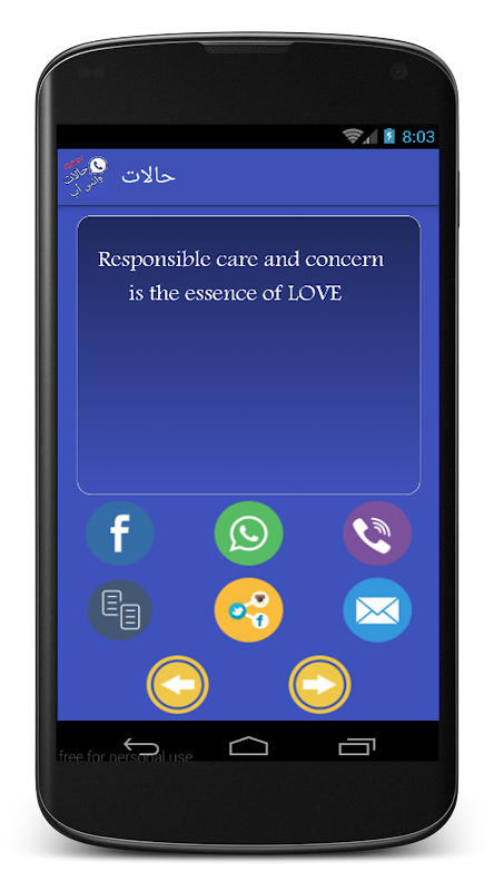 يحتوي هذا التطبيق على حالات وكلمات جميله للفيس بوك و الواتس اب
