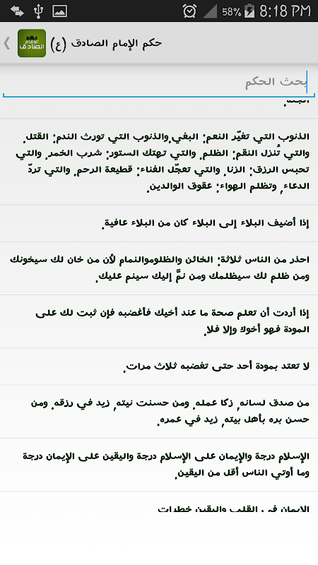 مجموعة من الحكم المُجمعة للإمام الصادق (ع) في مواضيع مختلفة في تطبيق واحد فريد.