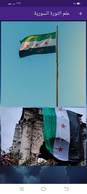 Có rất nhiều hình ảnh trong ứng dụng Cờ Cách mạng Syria và các hình ảnh này được đặc trưng bởi độ tinh khiết và là hình ảnh HD