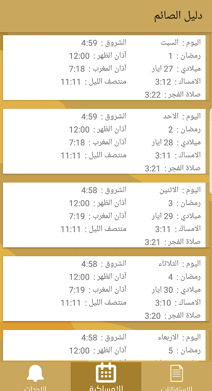 تطبيق دليل الصائم الخاص بأمساكيات شهر رمضان المبارك الصادرمن مركز القمر للاعلام الرقمي في النجف الاشرف التابع للعتبة العباسية المقدسة قسم الشؤون الفكرية والثقافية