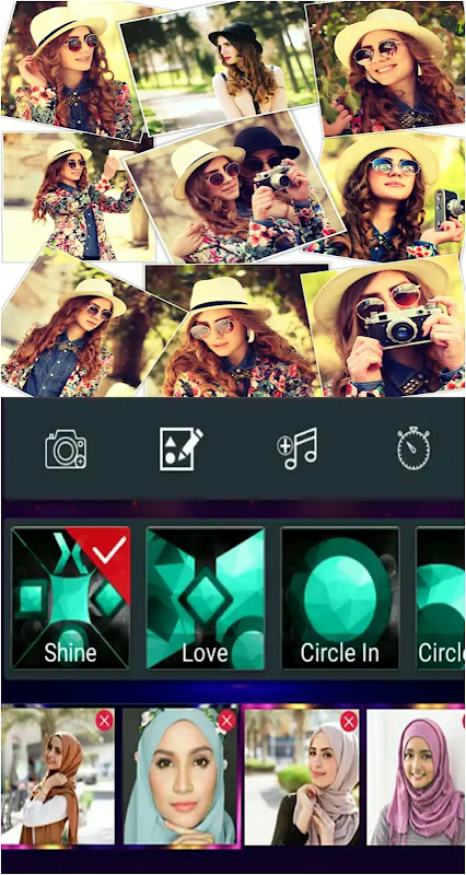 تطبيق صنع فيديو من الصوريعطيك مجموعة كبيرة من المؤثرات الرائعة و الفلاتر الجميلة التي يمنكن إضافتها على صور صنع فيديو، وكذلك العديد من الحركات المتنوعة في التنقل بين صور صانع الفديو، ويجعلك تحتفظ صور فيديو رائعة، وإضافة الى الميزات الموجودة في البرنامج دمج الصور مع الاغاني وعمل فيديو يمكنك إضافة مقطع صوتي أو موسيقي الى الفيديو، بحيث لو كنت تود صنع فيديو من الصور وتجميع صور لفرح أو حفلة وعمل مونتاج عليها وتحويلها لفيديو جميل ورائع يمكنك أن تضيف إليها موسيقى عن طريق صانع الفديو رومانسية أو أغنية مناسبة لهذه الصور وبهذا تحصل على فيديو و بمونتاج رائع دون الحاجة لخبير في تصميم ومونتاج الفيديو، كما ويمكنك البرنامج أيضا من الكتابة على الصور وبالطريقة التي تحبها. حول صورك الى فيديو مع الموسيقى