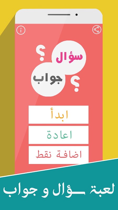 لعبة سؤال وجواب عربية جميلة وجديدة فيها تفكير ومعرفة. ثقافية ومسلية للعقل بعض الأسئلة صعبة وتحتاج تحدي وذكاء.