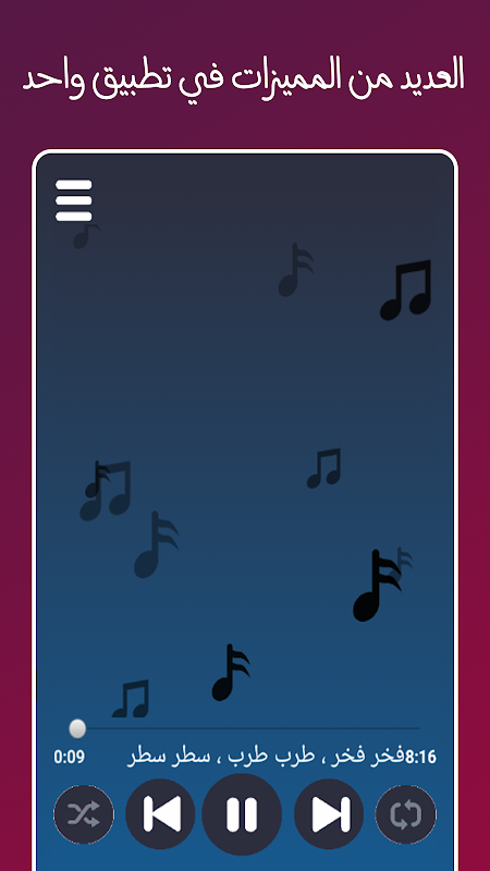 ايضا يحتوي البرنامج على مميزات كثيرة ، امكانية مشاركة الشيلة وايضا التشغيل في الخلفية والعديد والعديد من مميزات