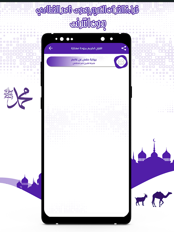 Và nếu bạn thích nghe Thánh Qur’an với giọng nói của Sheikh Nasser Al-Qatami ... và các chòm sao Sheikh khác, hoặc nếu bạn muốn tìm hiểu các quy tắc ngữ điệu hoặc tìm hiểu văn bản luật Hồi giáo mạnh nhất, đừng ngần ngại xem phần còn lại của các ứng dụng của chúng tôi trên cửa hàng được cung cấp miễn phí và dễ dàng cho người dùng. .